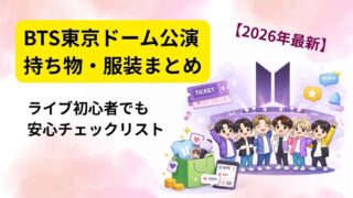 BTS東京ドーム公演2026の持ち物・服装を初心者向けにまとめました。必須アイテムから便利グッズ・服装のコツ・混雑対策まで、K-POP好きの体験談を交えてわかりやすく解説します。